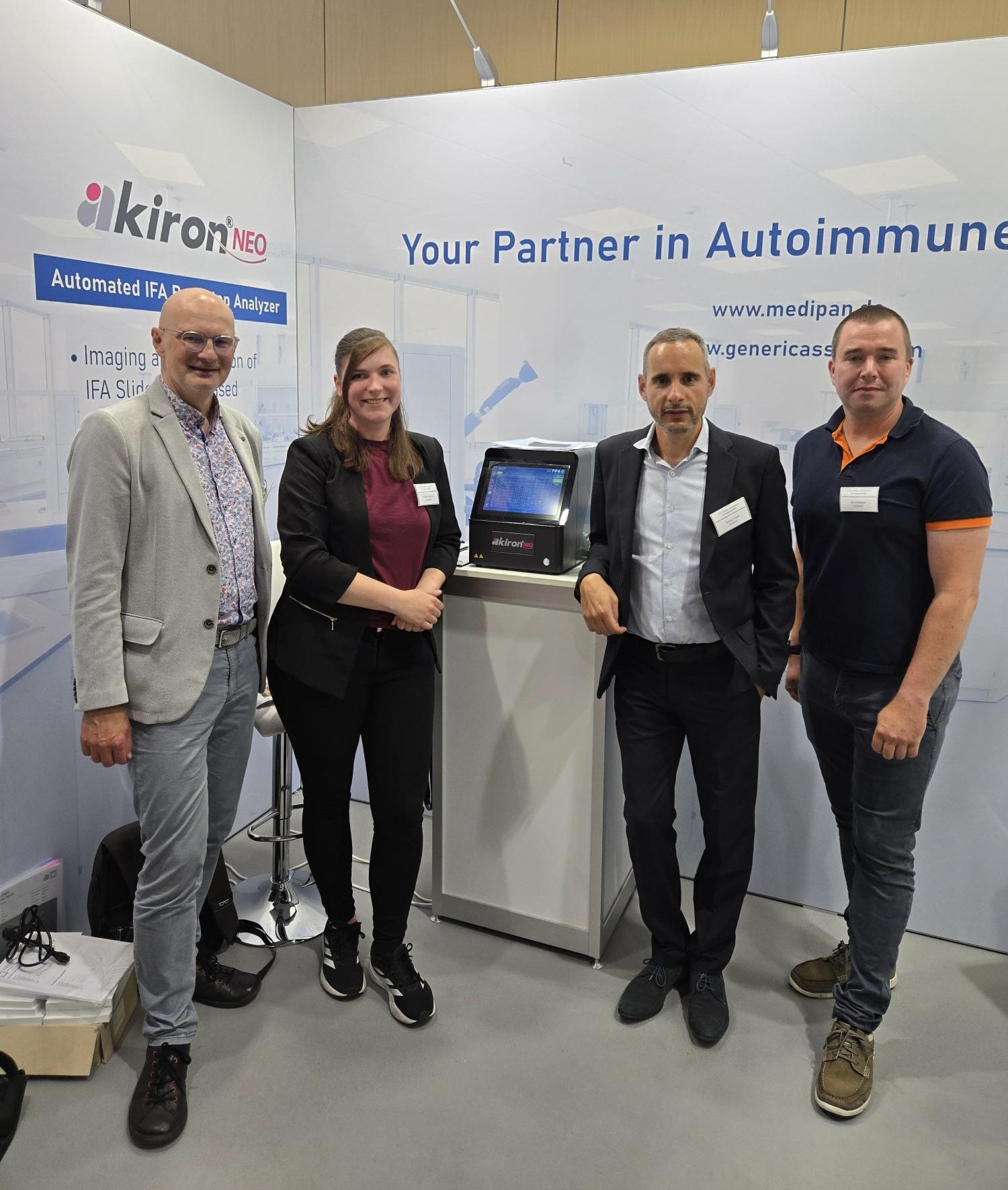 - Jonas Schmidt (Deutschland) verglich die KI-basierte ANA-Musterinterpretation des akiron® NEO mit Expertenbewertungen und zeigte, wie Künstliche Intelligenz den diagnostischen Workflow revolutionieren kann. Die Ergebnisse waren mit Expertenleistungen vergleichbar.